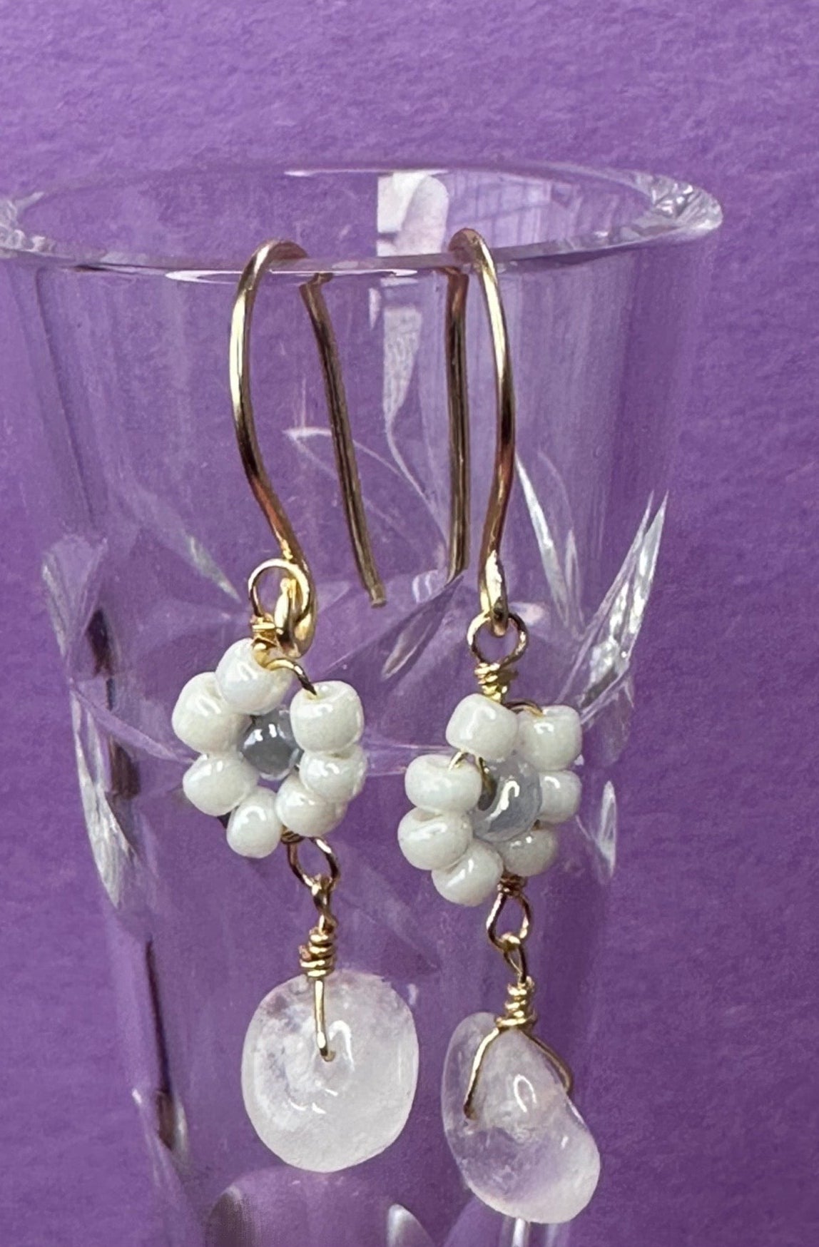 Materials: brass, clear quartz gemstone, glass seed beads.